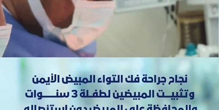 A new success for the medical team at Women’s Health House Hospital (formerly Specialized Women’s Hospital) in Port Said, with a successful surgical intervention and preservation of the ovaries for a 3-year-old girl as a result of ovarian torsion. The operation took place inside the operating rooms of Al-Nasr Specialized Hospital