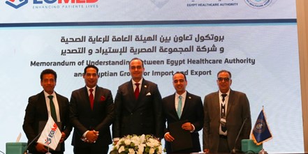 The Chairman of the Egypt Healthcare Authority, the Vice Chairman, and the Chairman of the Egyptian Group Company witnessed the signing of a cooperation protocol between the Authority and the company to exchange expertise through training medical staff on the latest medical technologies.