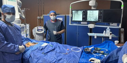 The procedure was successfully performed on a 27-year-old female patient who was suffering from severe thrombosis in both lower limb veins, extending to the inferior vena cava in the abdomen. The patient arrived at Taiba Specialized Hospital with severe pain and swelling in the lower limbs and pelvis.